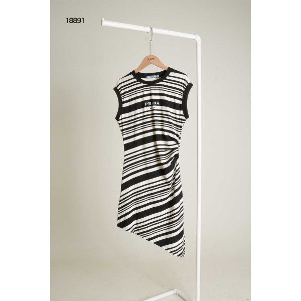 • 프라다 슬리브리스 코튼 스트라이프 드레스 국내배송