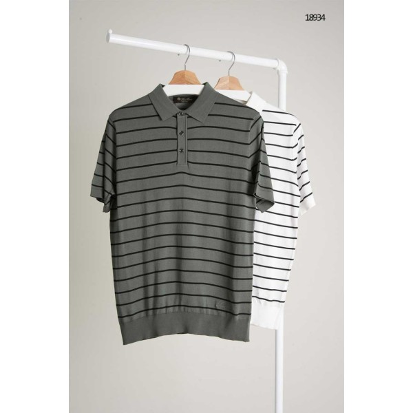 로로피아나 스트라이프 자수로고 쿨니트 카라티 국내배송 > 의류