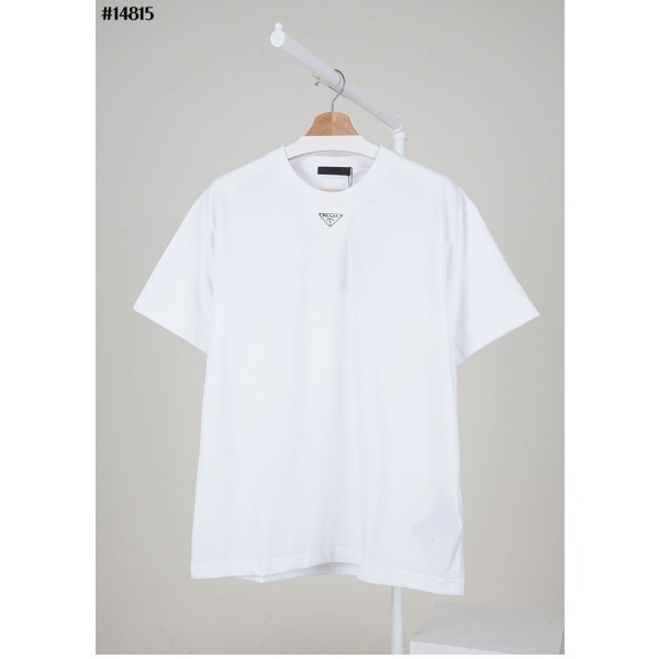 프라다 남성 화이트 삼각 로고 클래식 코튼 반팔 티셔츠 국내배송
