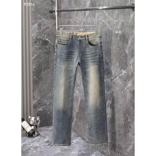 2025SS프라다백포켓 포인트 파츠로고 스판 워싱데님진커스텀 국내배송 > 의류