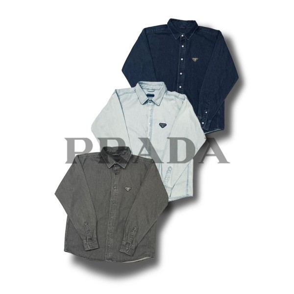 프라다 P 클래식 레더플레이트 데님 셔츠[남녀공용!] 국내배송