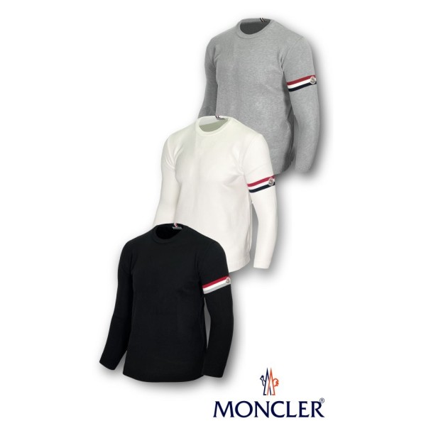 몽클레어 MC 삼색라인 암밴드 와펜 울 라운드 클래식 니트 국내배송