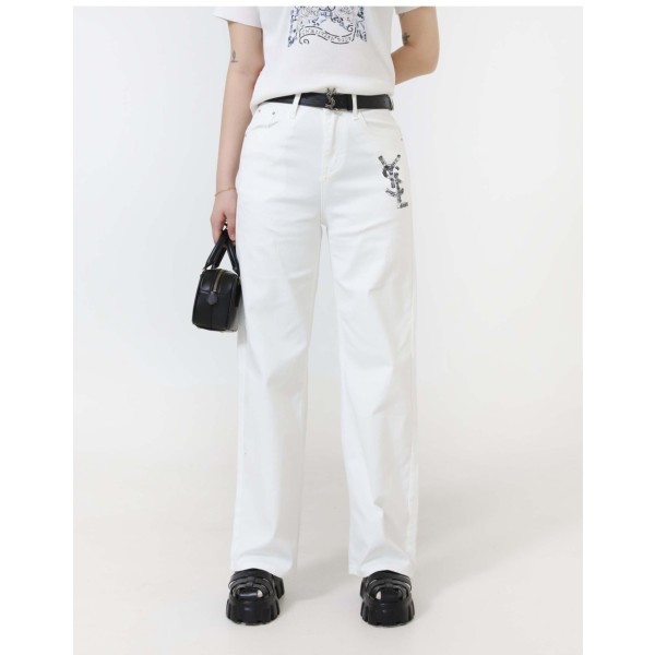 입생로랑 수입 로고 프린팅 세미 와이드 진 국내배송