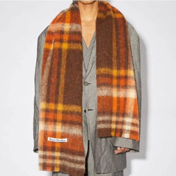 • 아크네 모헤어 체크 스카프 오렌지브라운 국내배송