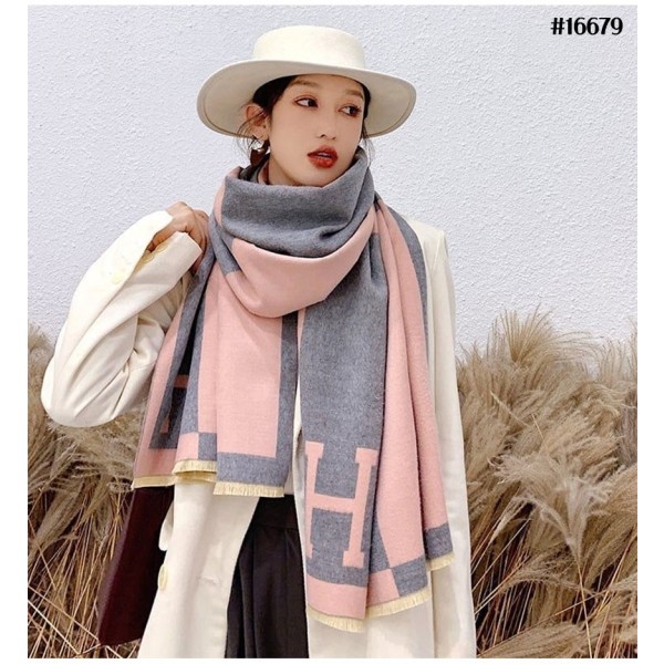 • 에르메스 H 울 자카드 프린지 판쵸 머플러 국내배송