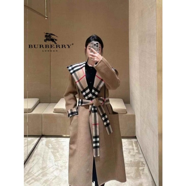 • 버버리 체크 세무 후드 로브코트 국내배송