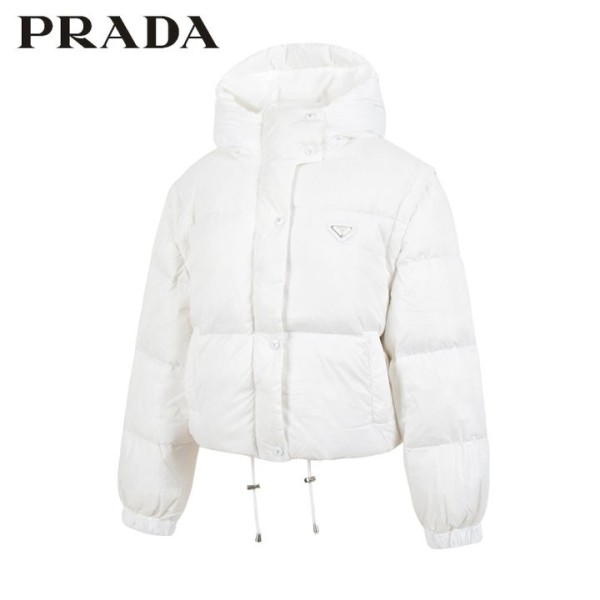 프라다25FW. 클래식 트라이앵글 후드 덕다운 멀티 패딩 국내배송 > 의류