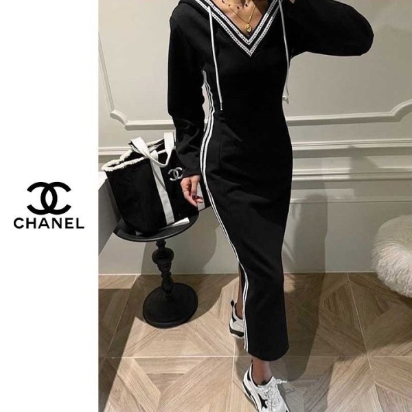 샤넬[C] 레이스라인 브이 후드원피스 국내배송 > 의류
