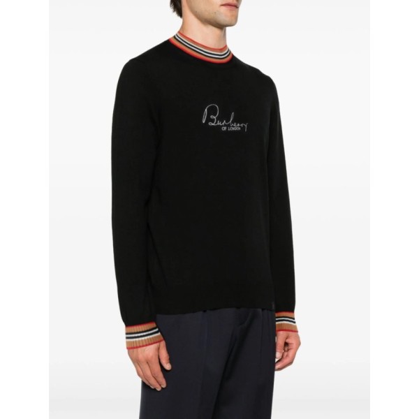 버버리 25FW. 시보리 레터링 자수 램스울 넥 니트 국내배송
