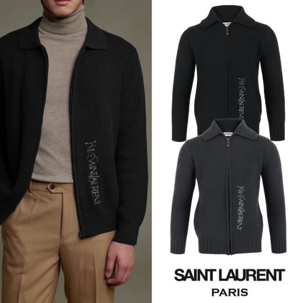 입생로랑 25FW. 레터링 자수 와플 니트 집업 국내배송 > 의류