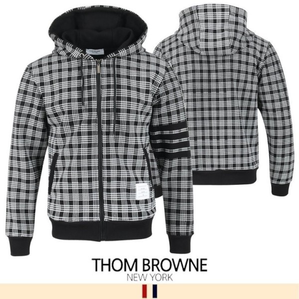 톰브라운 블랙4바 하운드 체크 후드 집업 국내배송